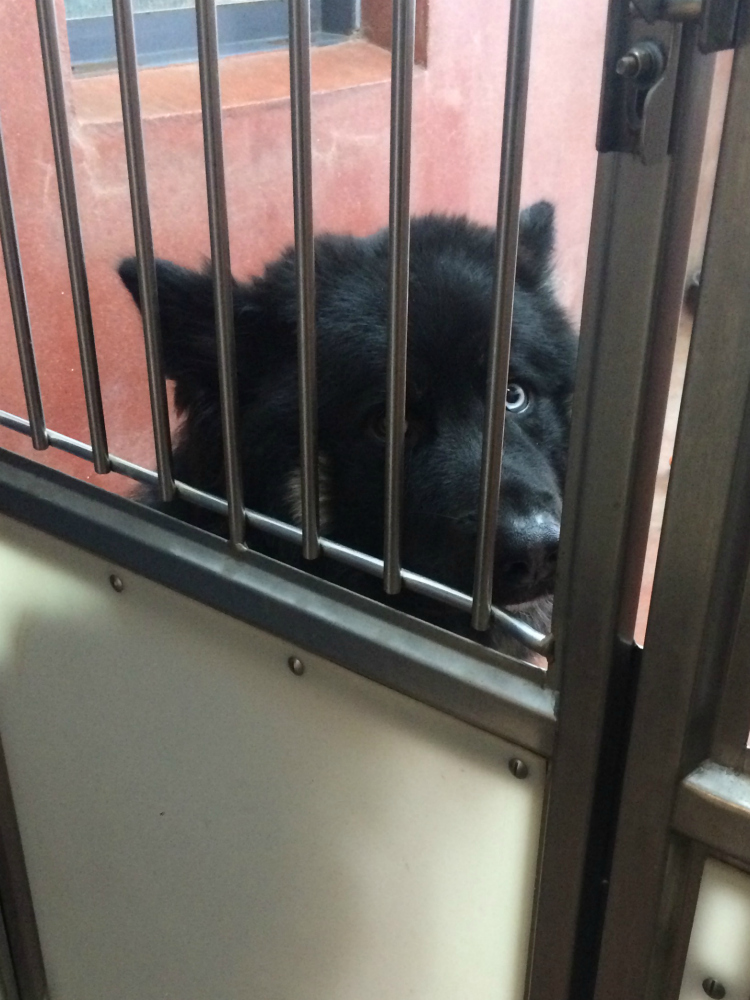 Vastikään tarhalle tuotujen koirien rivistössä oli myös 10-vuotias rauhallinen, harmaakuonoinen koira, joka katsoi meitä kaltereiden takaa lempein silmin. Hylkäämisen syy: omistajan raskaus. Ihmisvihani nousi seitsemänteen potenssiin.