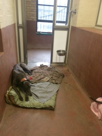 Pääsimme myös katsomaan näitä adoptioon valmiita koiria tiloihin, jotka ovat auki yleisölle. Tässä porukassa oli paljon uljaita greyhoundeja, kiitos koiraurheilun raadollisuuden. Juoksukisoissa pärjäämätömät koirat ovat arvottomia, ja ne heivataan pois. Phoebe kertookin, että vinttikoirakisoihin liittyvän problematiikan ratkaisuyritykset ovat heidän agendallaan.