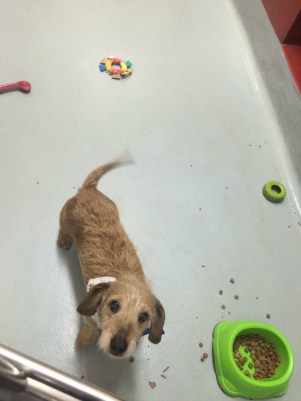 Pikkurusseli pomppi ilahtuneena meidät nähdessään. Se ei ymmärtänyt, miksemme tulleetkaan sen yksiöön leikkimään. Emme voineet antaa edes rapsutuksia, sillä säännöt tällä puolella olivat tiukat. Viereisen kennelin ovella istui noutaja tennispallo suussa. Taas meni roska silmään.